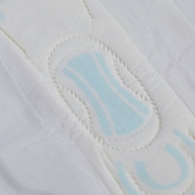 Caratteristiche: 1.Materiale:Cotton Soft Non-woven top sheet;USA Fluff pulp; PE film; release paper; 2.Il rivestimento a forma di ala a secco morbido è facile da impedire le perdite laterali; 3. Protezione a quattro pareti progettata per la protezione dalle perdite; 4.Utilizzando un'unica foglia non tessuta a canaglia secca, distribuire rapidamente il liquido, prevenire le perdite.